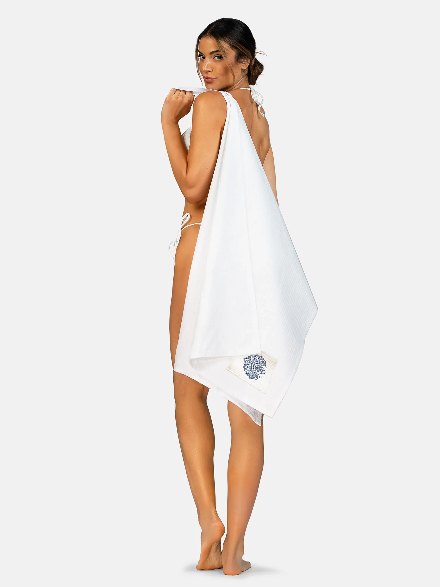 Dostępne rozmiary: 80×155 cm – doskonały jako pareo do sauny, okrycie po kąpieli lub ręcznik plażowy,