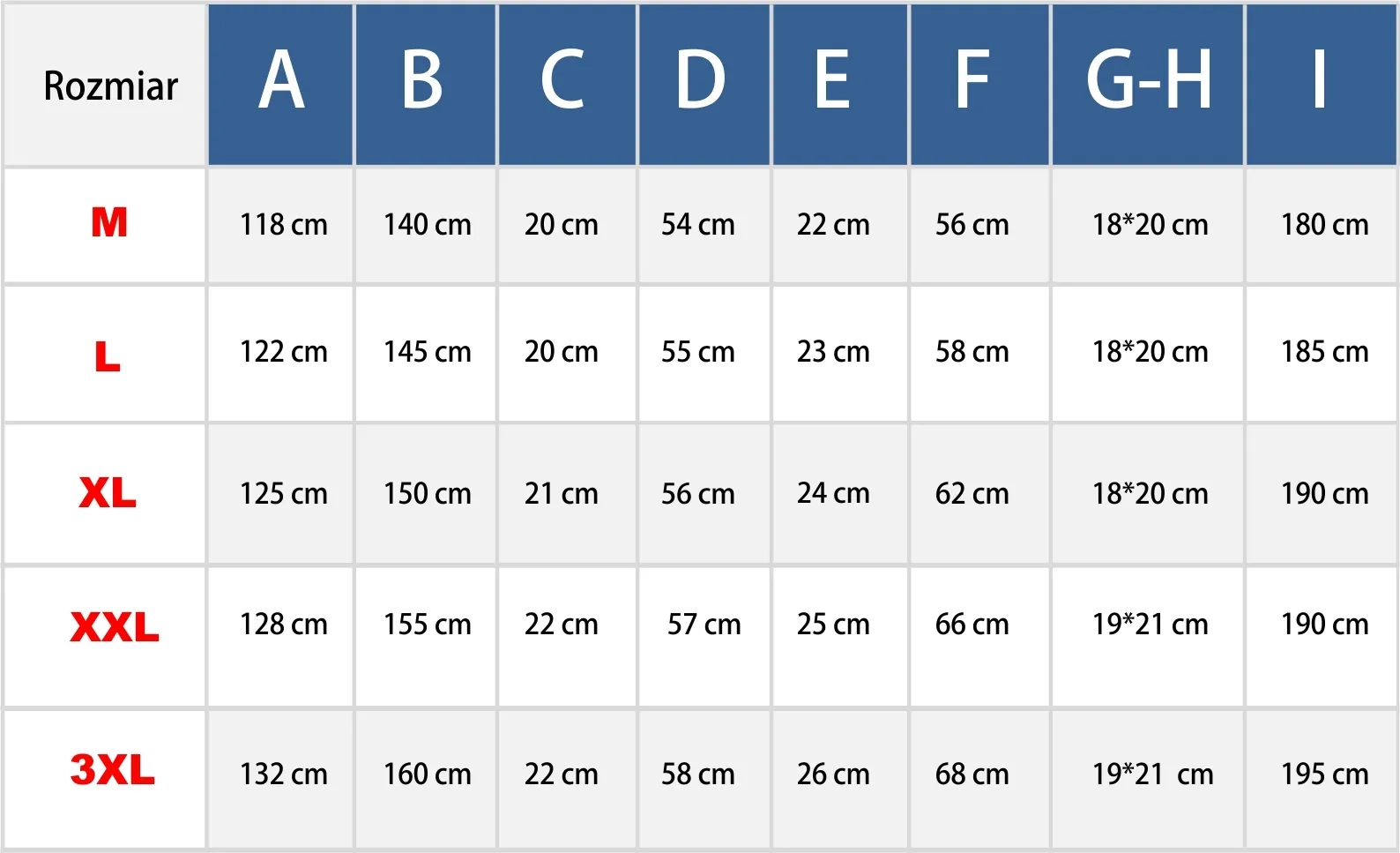 - Dostępne rozmiary: (38) M, (40) L, (42) XL, (44) XXL, (46) 3XL.