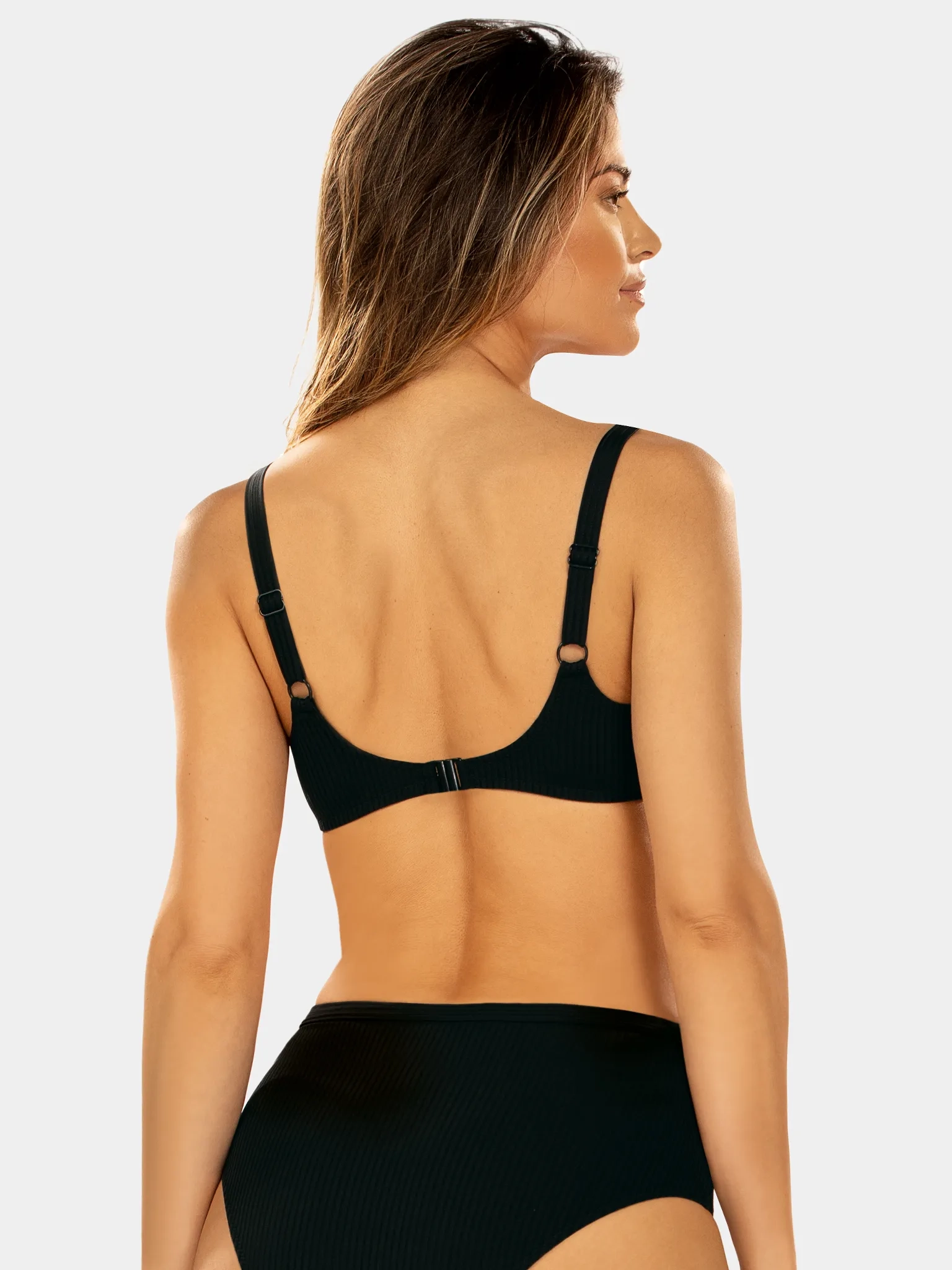 - Odporność na UV, chlor i sól: Biustonosz pozostaje trwały i zachowuje swoje walory estetyczne, nawet po wielu sezonach intensywnego użytkowania