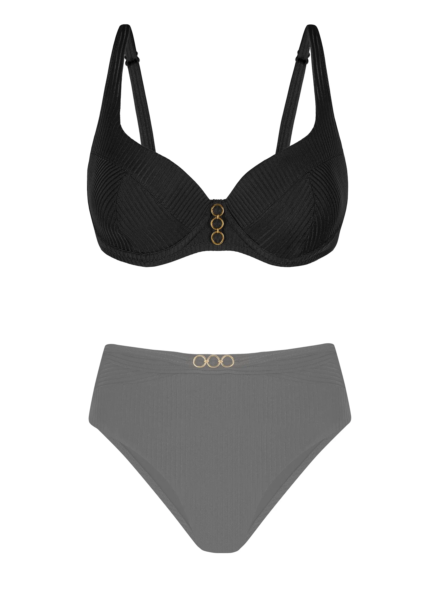 - Prążkowana tkanina: Klasyczny czarny materiał dodaje elegancji i nowoczesnego wyglądu, a złote detale subtelnie podkreślają całość