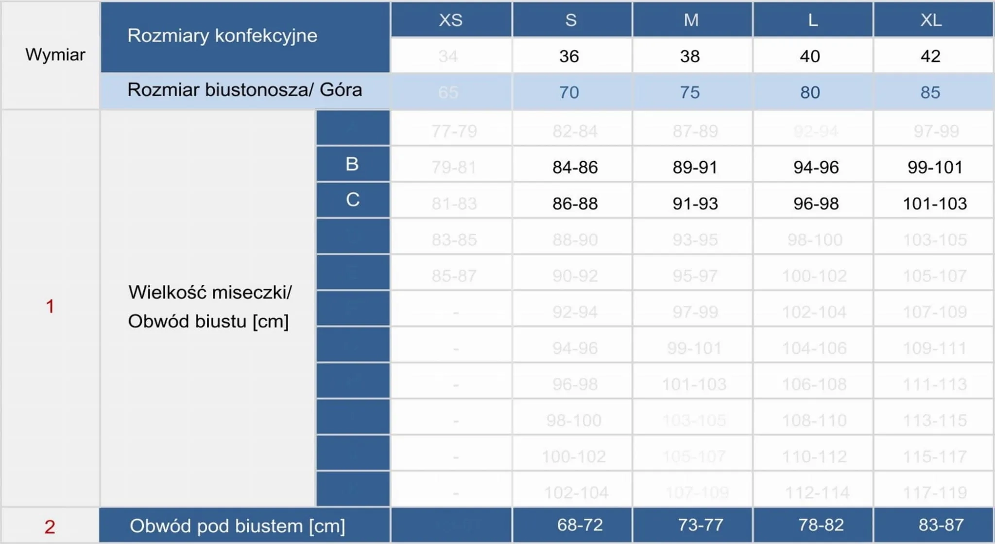 | Fason - krój | usztywniana z niskim fiszbinem |