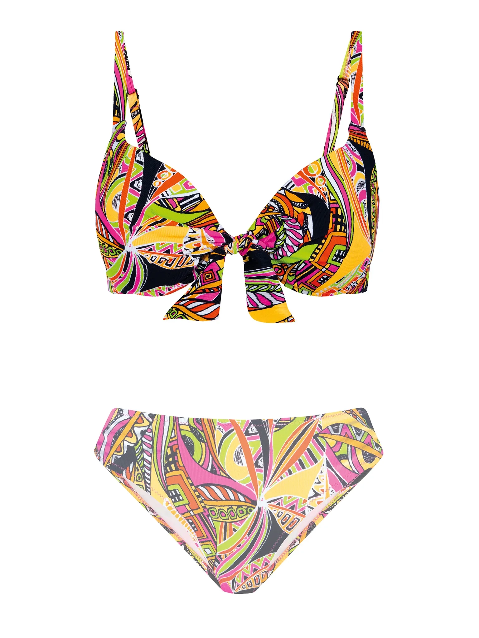 Kolorowa góra od bikini push-up FG228/929P wyróżnia się intensywnymi odcieniami różu, pomarańczu i zieleni, tworząc harmonijną całość, która pięknie podkreśla letnią opaleniznę. To idealny wybór dla kobiet, które cenią sobie połączenie wygody z wyjątkowym stylem i niebanalnym wzornictwem.