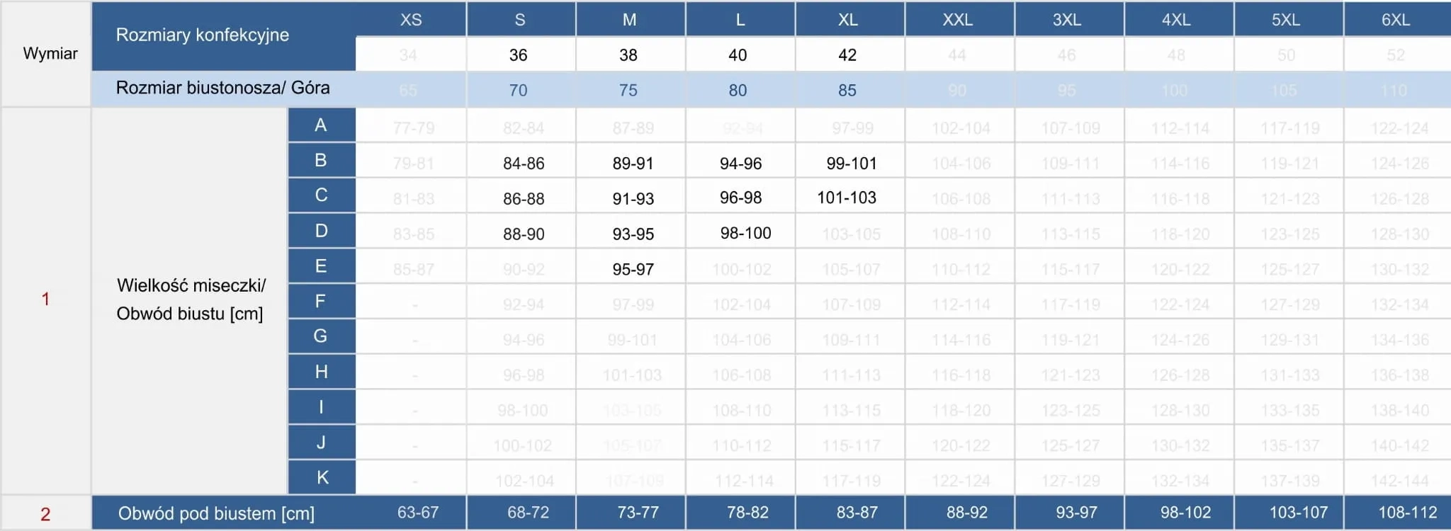 - Rozmiary: 36BCD, 38BCDE, 40BCD, 42BC