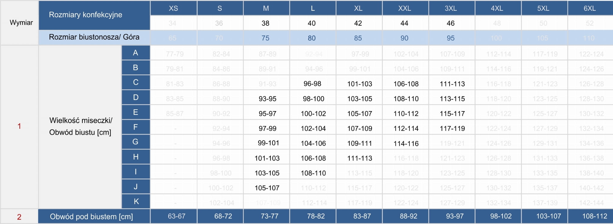 Produkowany w rozmiarach: 38DEFGHIJ 40CDEFGHI 42CDEFGH 44CDEFG 46CDEF