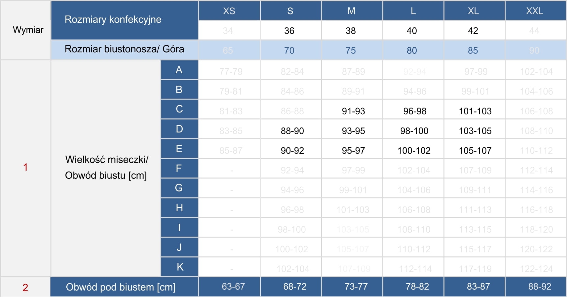 Produkowany w rozmiarach: 36DE 38CDE 40CDE 42CDE
