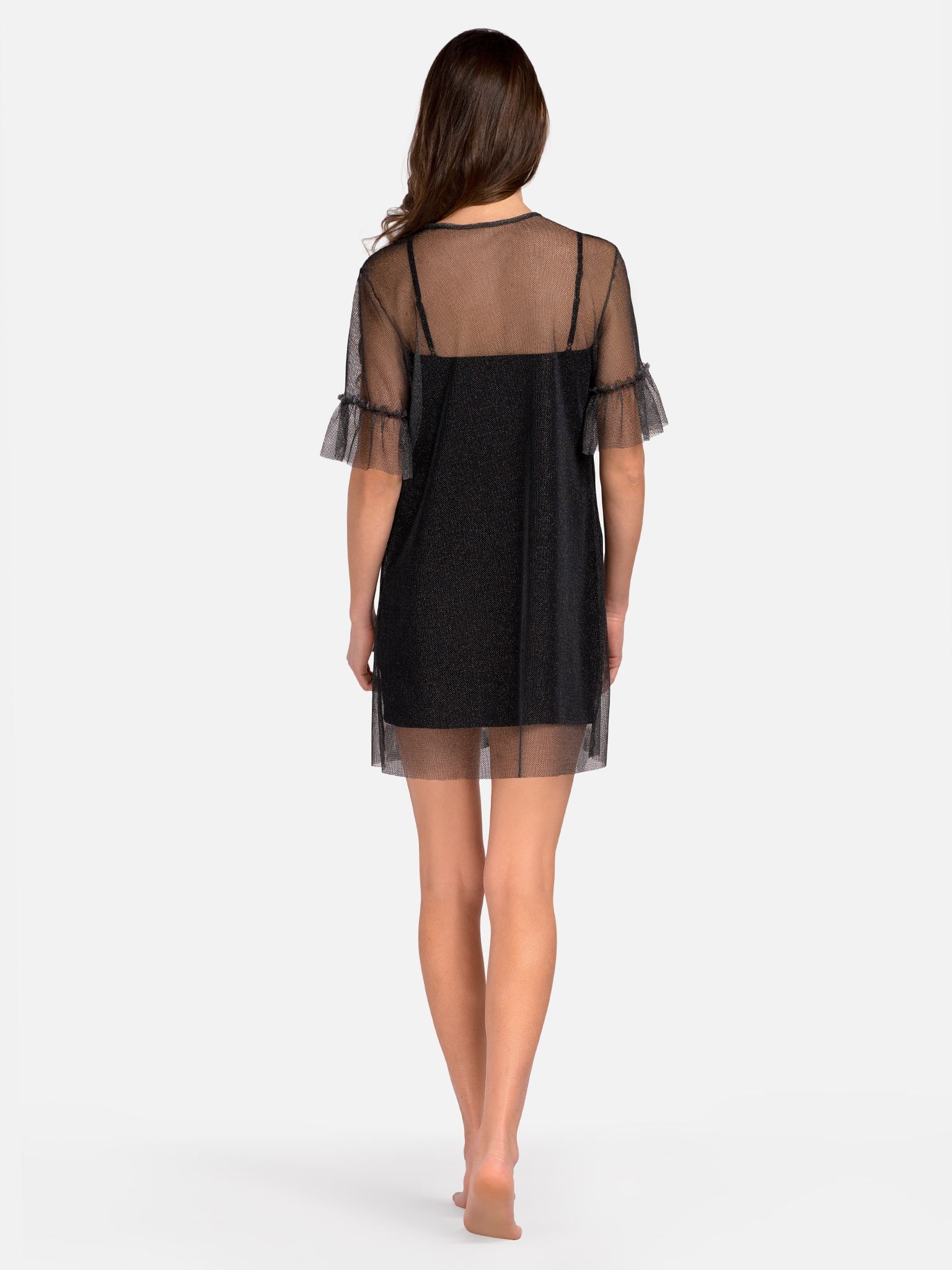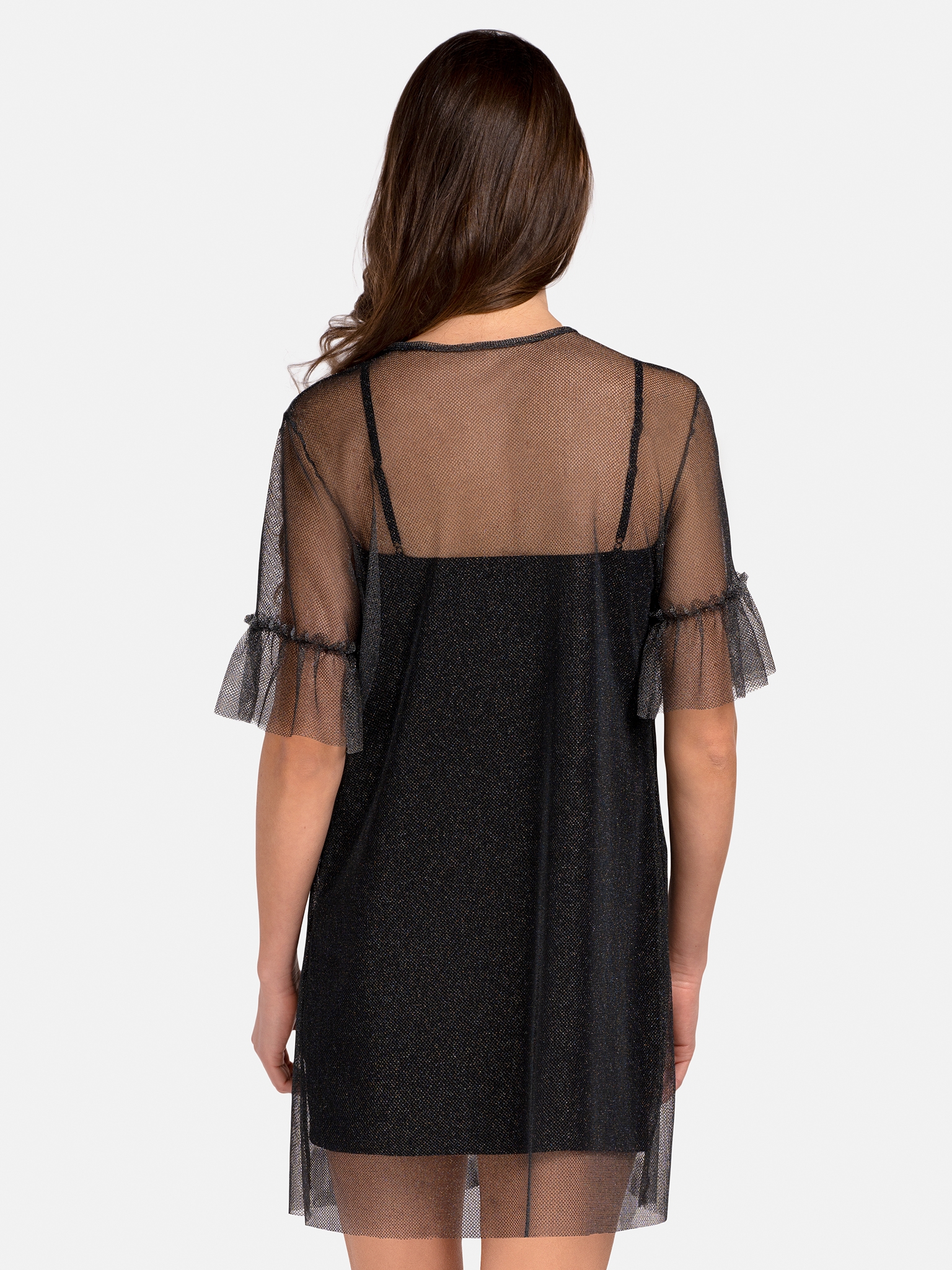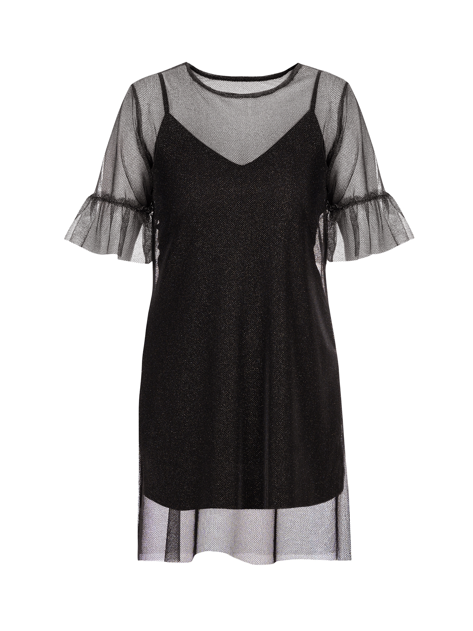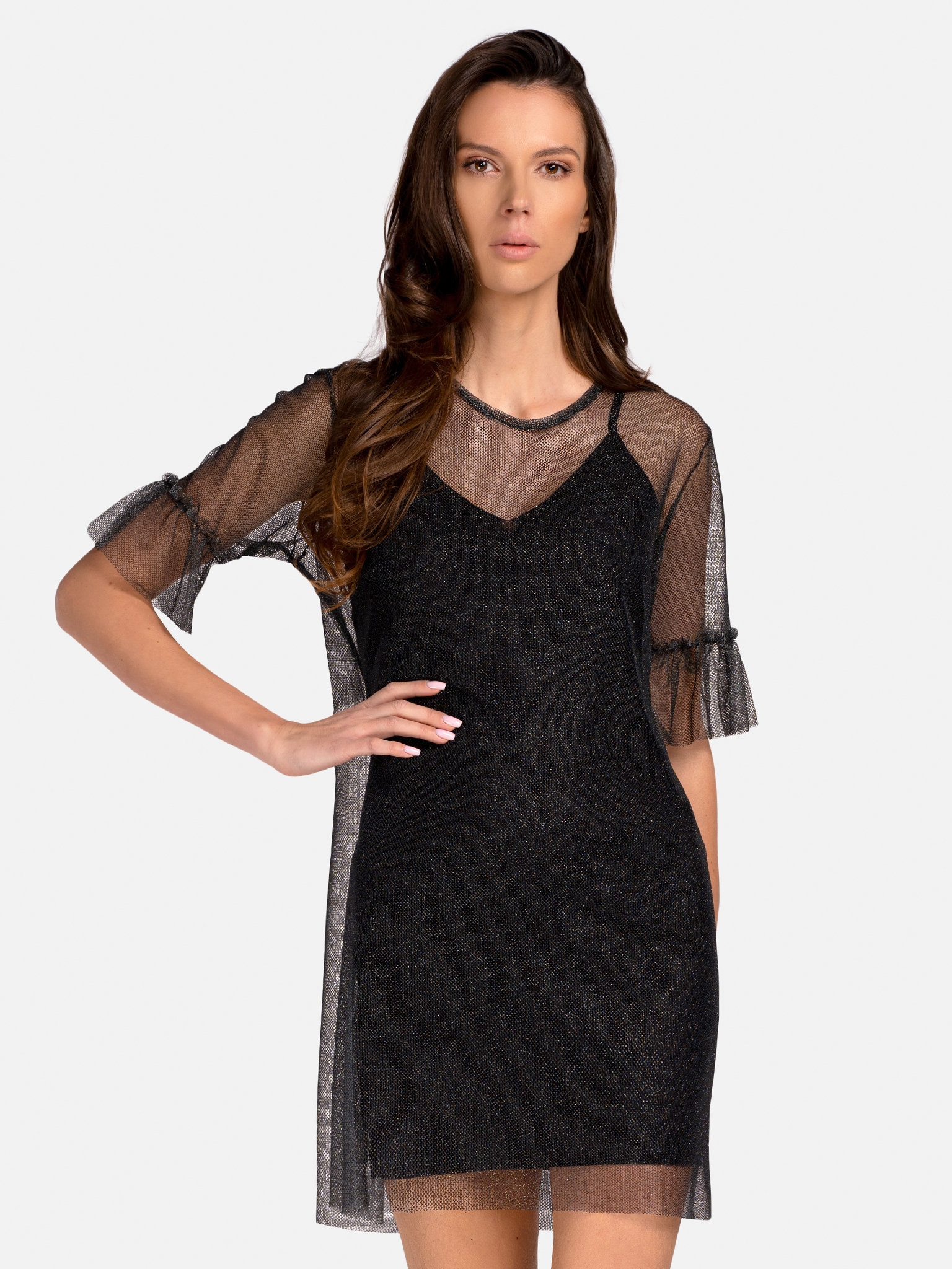 Letnia połyskująca sukienka z halką 2w1 czarna
