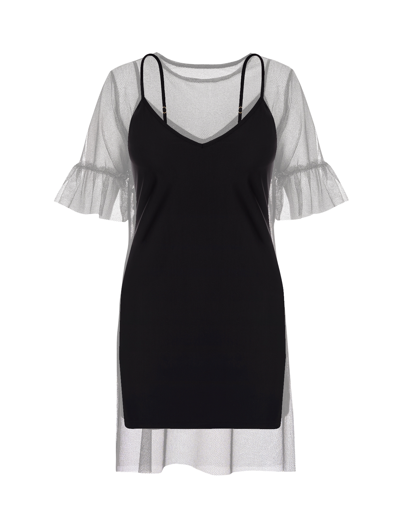 Zestaw sukienki z halką daje Ci pełną swobodę stylizacji – sprawdzi się zarówno na plażę, jak i do miasta czy na wieczorne wyjście. Na dzień możesz narzucić samą transparentną sukienkę na kostium kąpielowy, tworząc modny, lekki look idealny na wakacyjny spacer czy szybkie wyjście po lody. Połącz ją z halką, by uzyskać kobiecą i komfortową stylizację na co dzień – do pracy, na zakupy czy spotkanie z przyjaciółką. A gdy zapadnie zmrok, wystarczy dodać szpilki, efektowną biżuterię i kopertówkę – i gotowe! Zestaw błyskawicznie zmienia się w zmysłową sukienkę idealną na imprezę, randkę czy letni event.