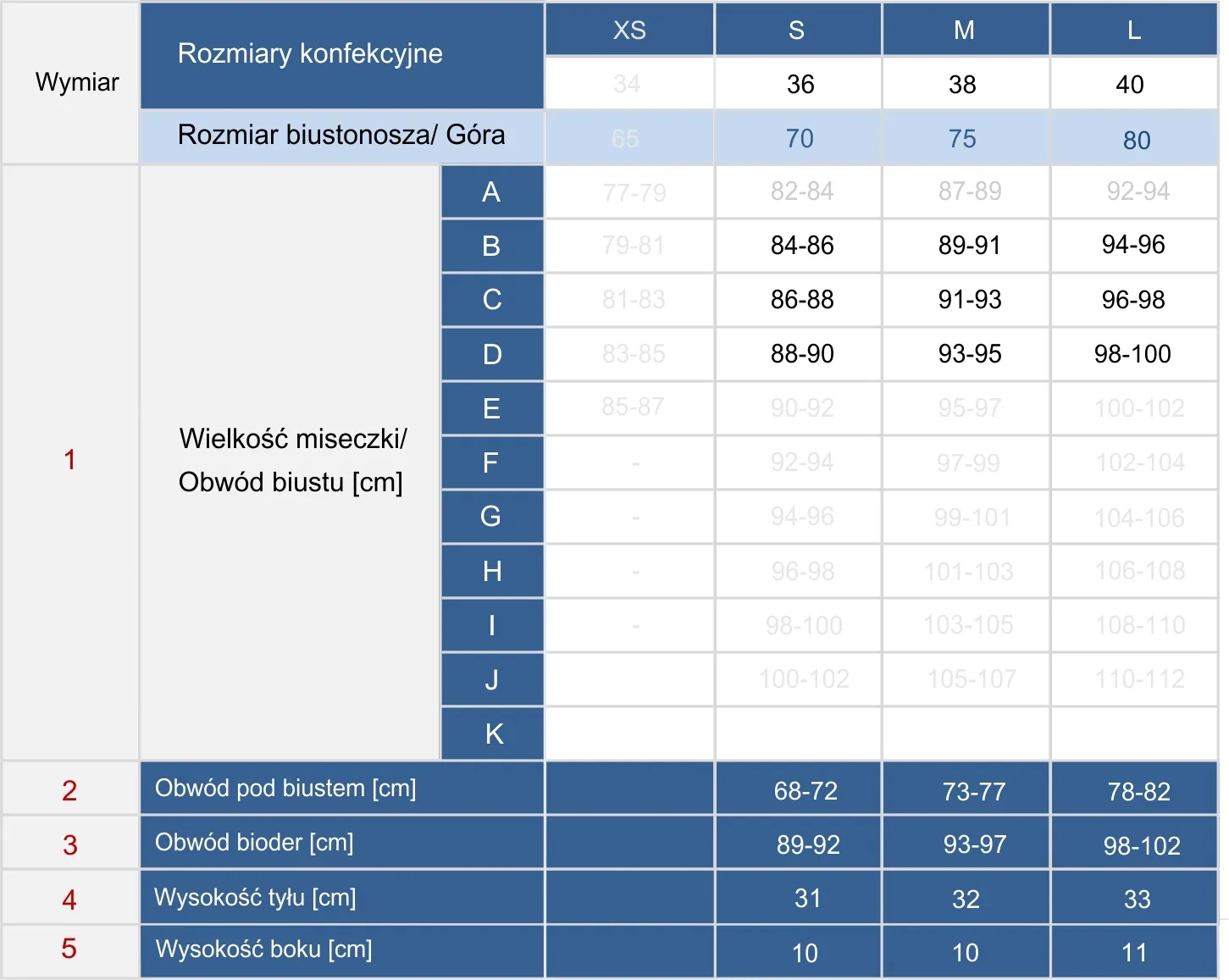 - Modelka: Wzrost 175 cm, talia 63 cm, biodra 90 cm, biustonosz 70D (36D)