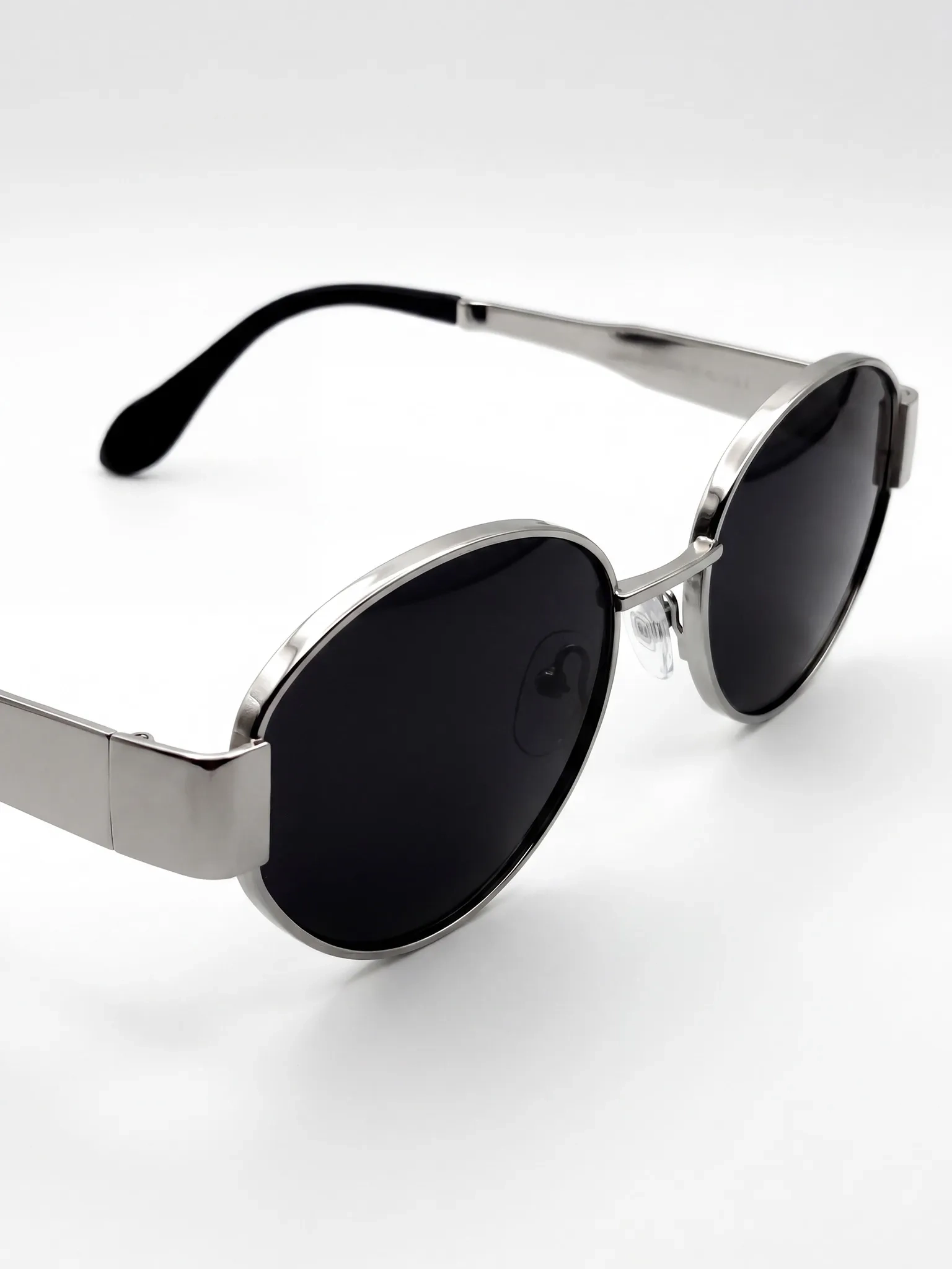 Czarne owalne okulary w stylu MARC silver - ponadczasowa forma w nowoczesnym, srebrnym wydaniu