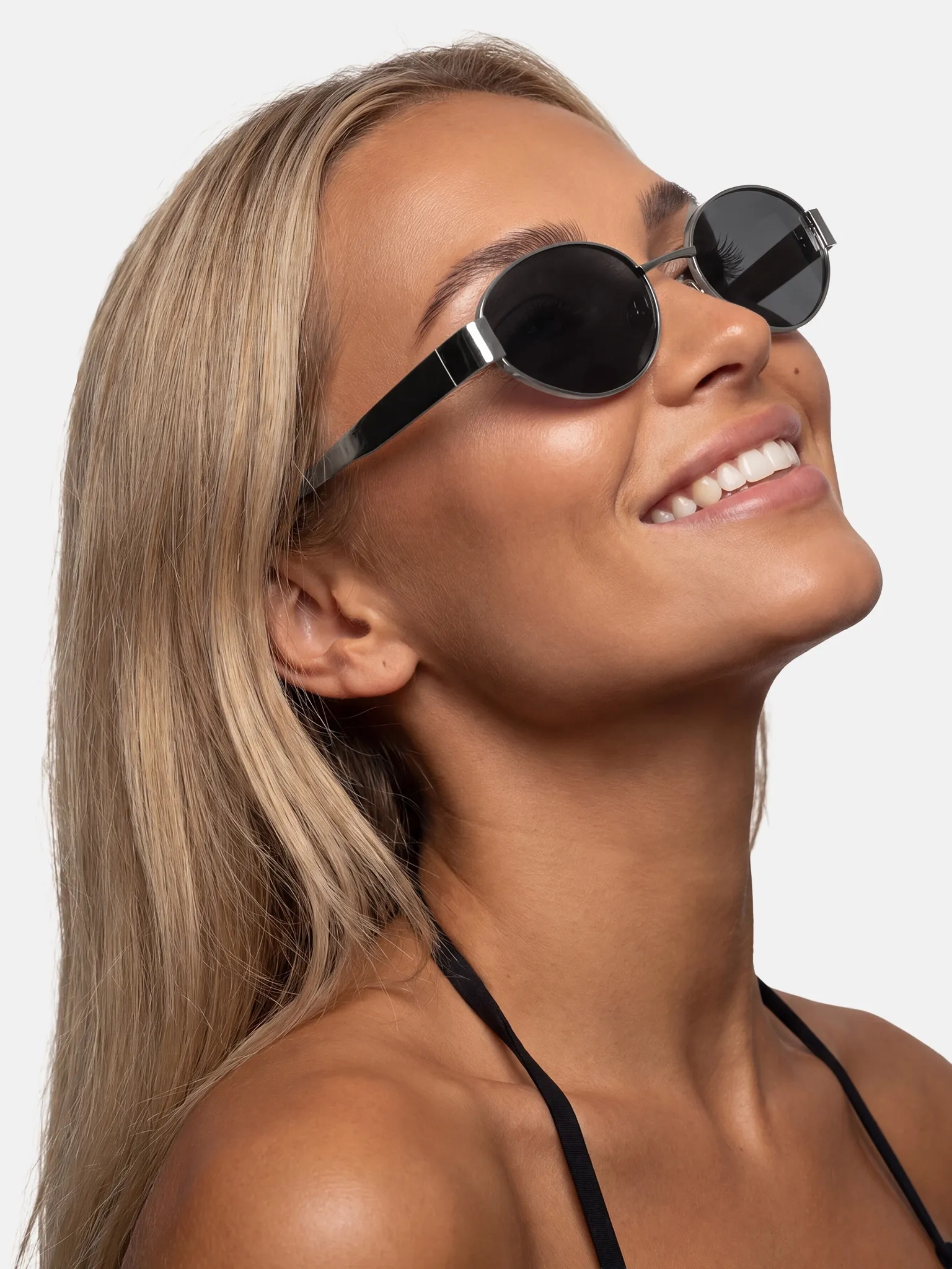 Owalny kształt od lat pozostaje jednym z najbardziej uniwersalnych wyborów - delikatnie wysmukla rysy twarzy i dodaje lekkości każdej stylizacji. W połączeniu z głębokimi, czarnymi soczewkami tworzy efekt minimalistycznego luksusu, który doskonale współgra zarówno z codziennym outfitem, jak i eleganckim lookiem. Dodatkowo zastosowana polaryzacja redukuje odblaski i poprawia komfort widzenia, szczególnie w słoneczne dni nad wodą lub w mieście.