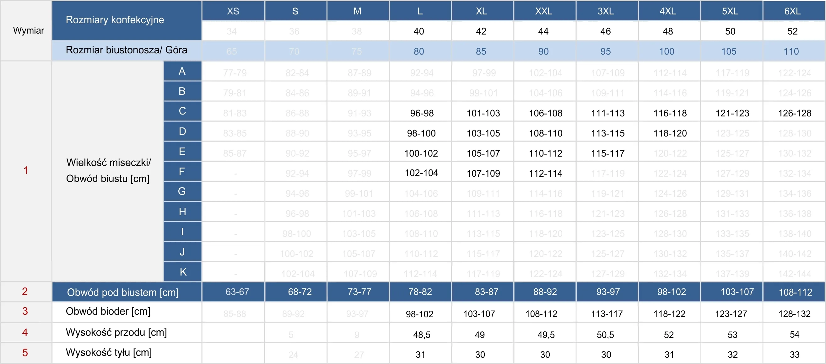 - Piankowe miseczki i fiszbiny – zapewniają doskonałe podtrzymanie biustu i modelowanie sylwetki.