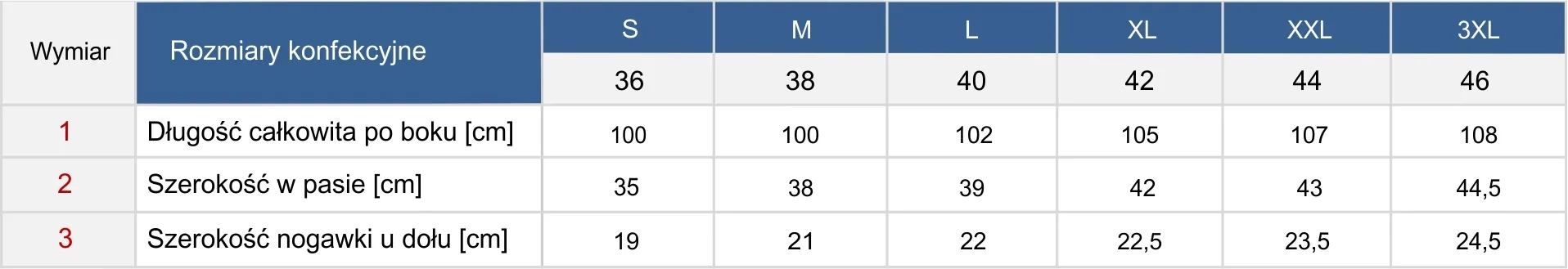 - Rozmiary: S/36 M/38 L/40 XL/42 XXL/44 3XL/46