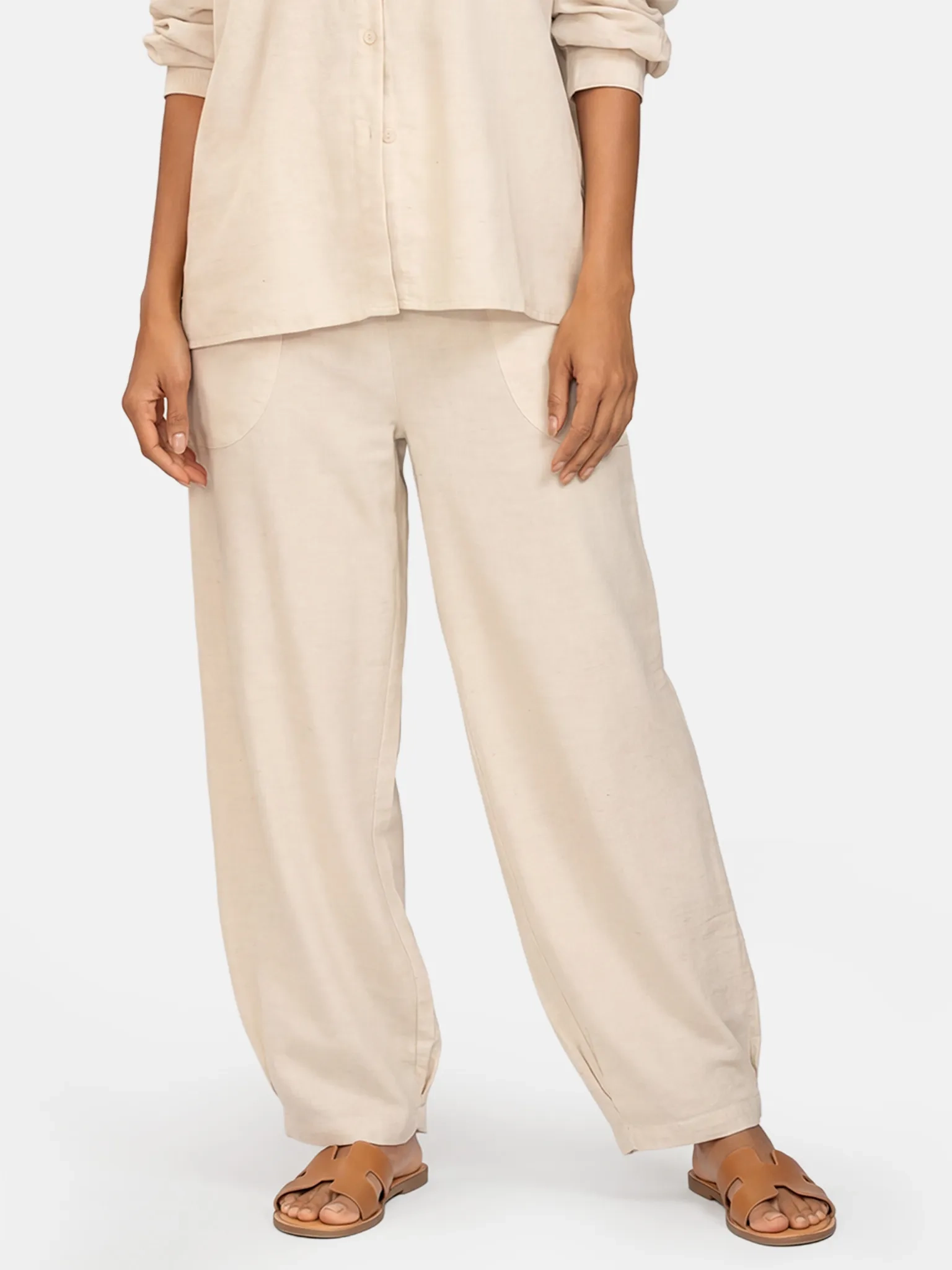 Przewiewne spodnie plażowe z lnem w kolorze jasny beż - baza letnich stylizacji