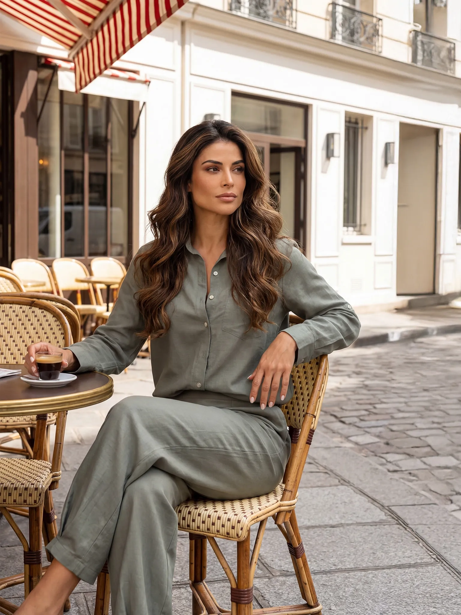Na plażę połącz spodnie z ulubionym bikini i lnianą koszulą F249/857 lub jasnobeżową F249/850, tworząc naturalny, warstwowy zestaw chroniący przed słońcem. Na miasto noś je z dopasowanym topem lub prostym t-shirtem i sandałami, aby uzyskać spokojny look w stylu resort. Wieczorem zestaw spodnie z lekką bluzką, body i biżuterią w złotym odcieniu, a ten sam model stanie się bazą bardziej eleganckiej, ale wciąż niezwykle wygodnej stylizacji. Te spodnie to prawdziwa perełka dla każdej miłośniczki mody!
