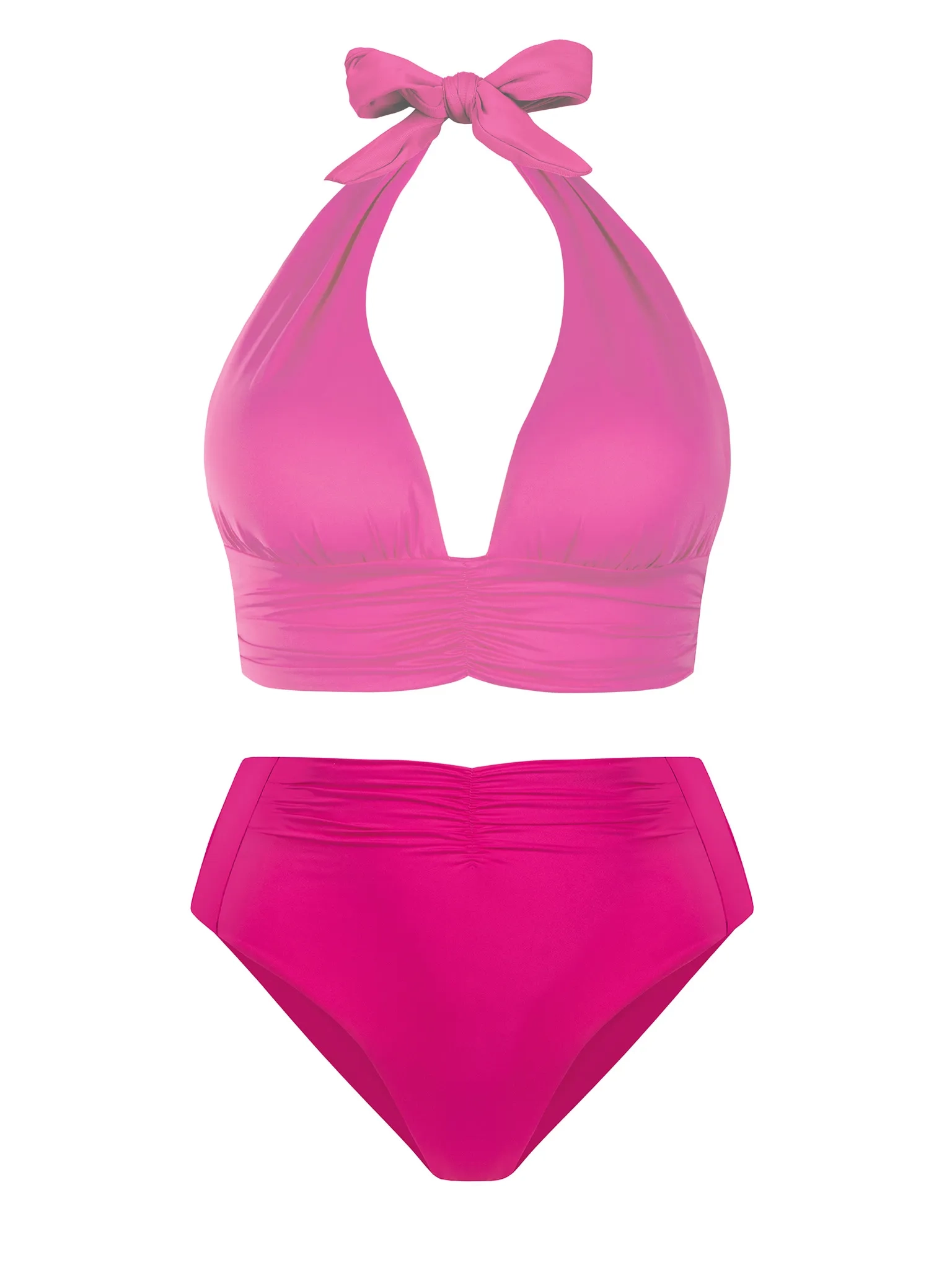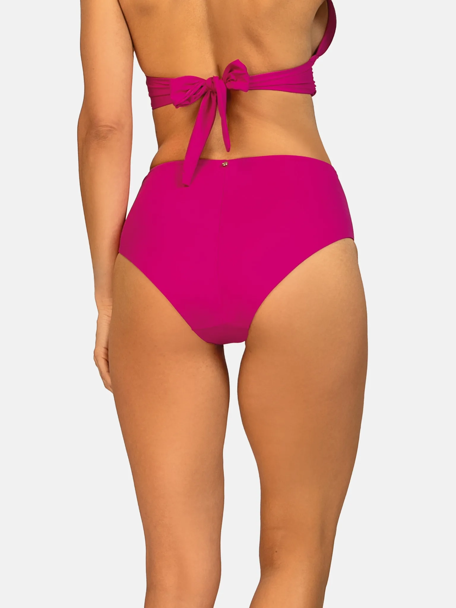 Różowe figi kąpielowe z wysokim stanem - wymodelowany brzuch i talia w energetycznym kolorze