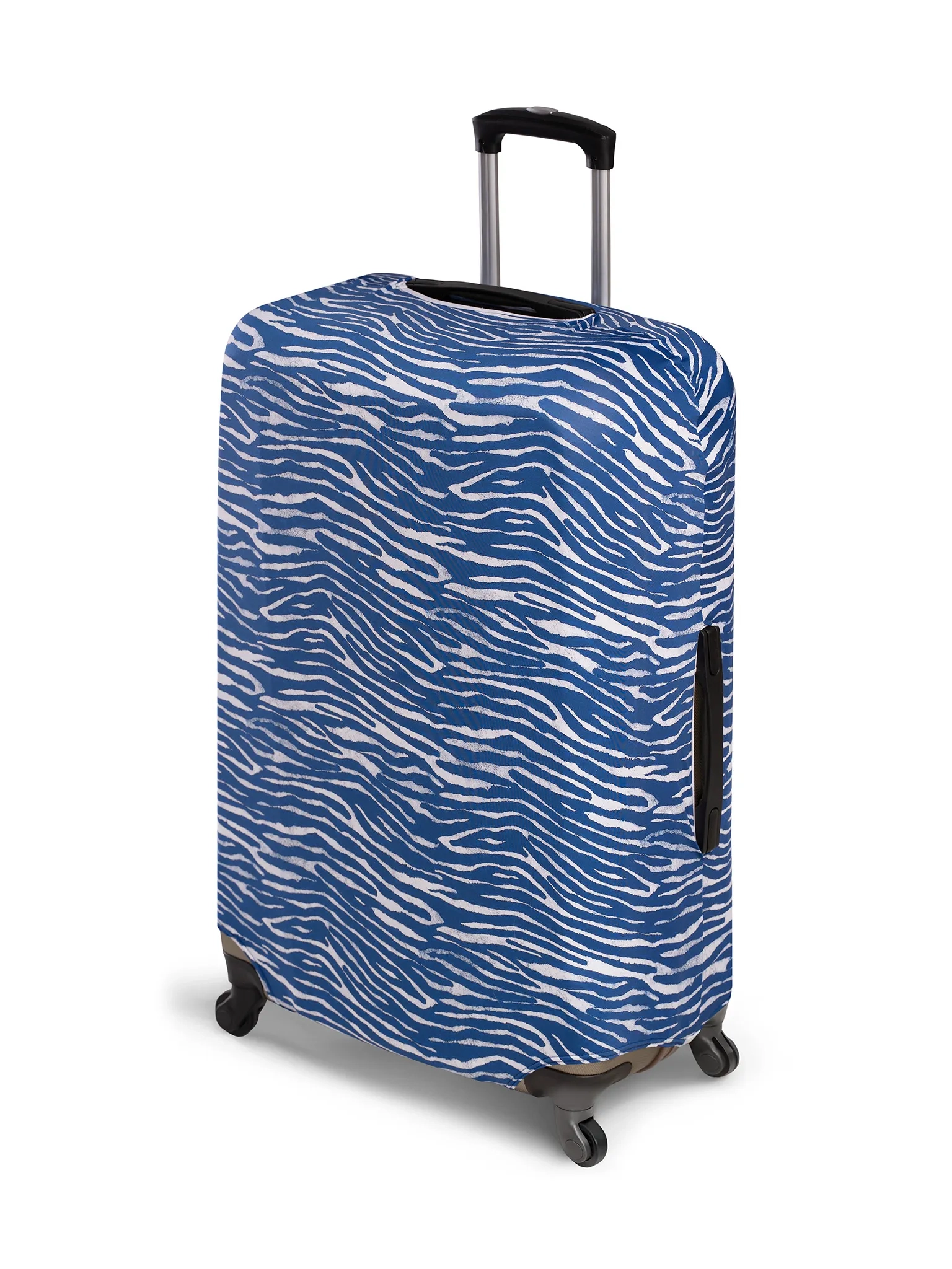 Podczas podróży Twoja walizka sporo przeżywa: taśmy bagażowe, ciasne luki bagażowe, deszcz, kurz i przypadkowe otarcia. Pokrowiec na walizkę to prosty sposób, aby zabezpieczyć bagaż przed zarysowaniami i zabrudzeniami, a przy okazji wyróżnić go na lotnisku. Niebiesko-biały wzór inspirowany morskimi falami sprawia, że walizka jest świetnie widoczna z daleka i dużo trudniej ją pomylić z innymi.