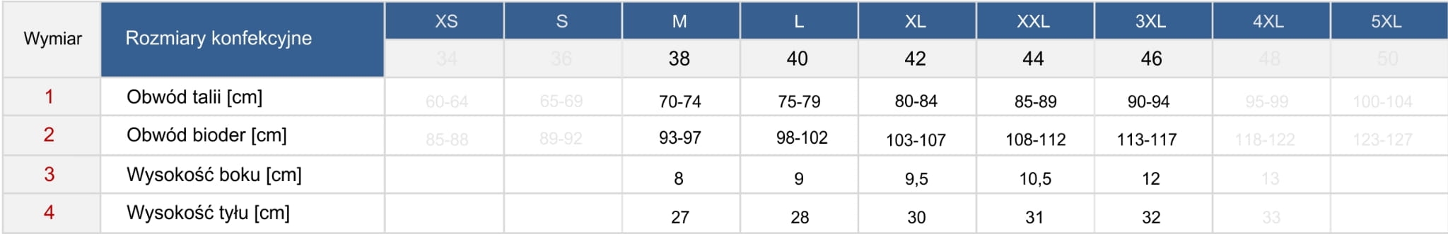 Produkowany w rozmiarach: M/38 L/40 XL/42 XXL/44 3XL/46