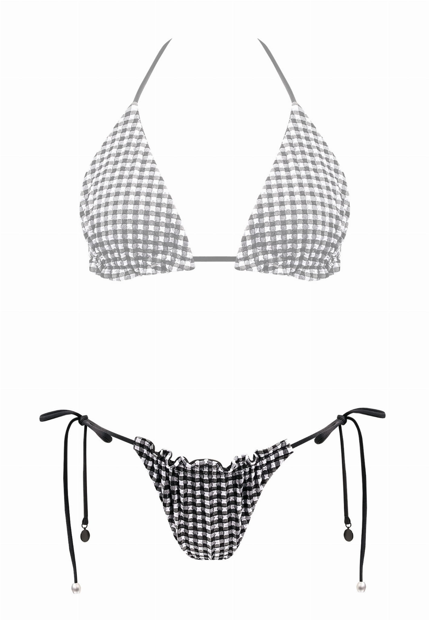 Wiązane majtki od bikini w biało-czarną kratkę