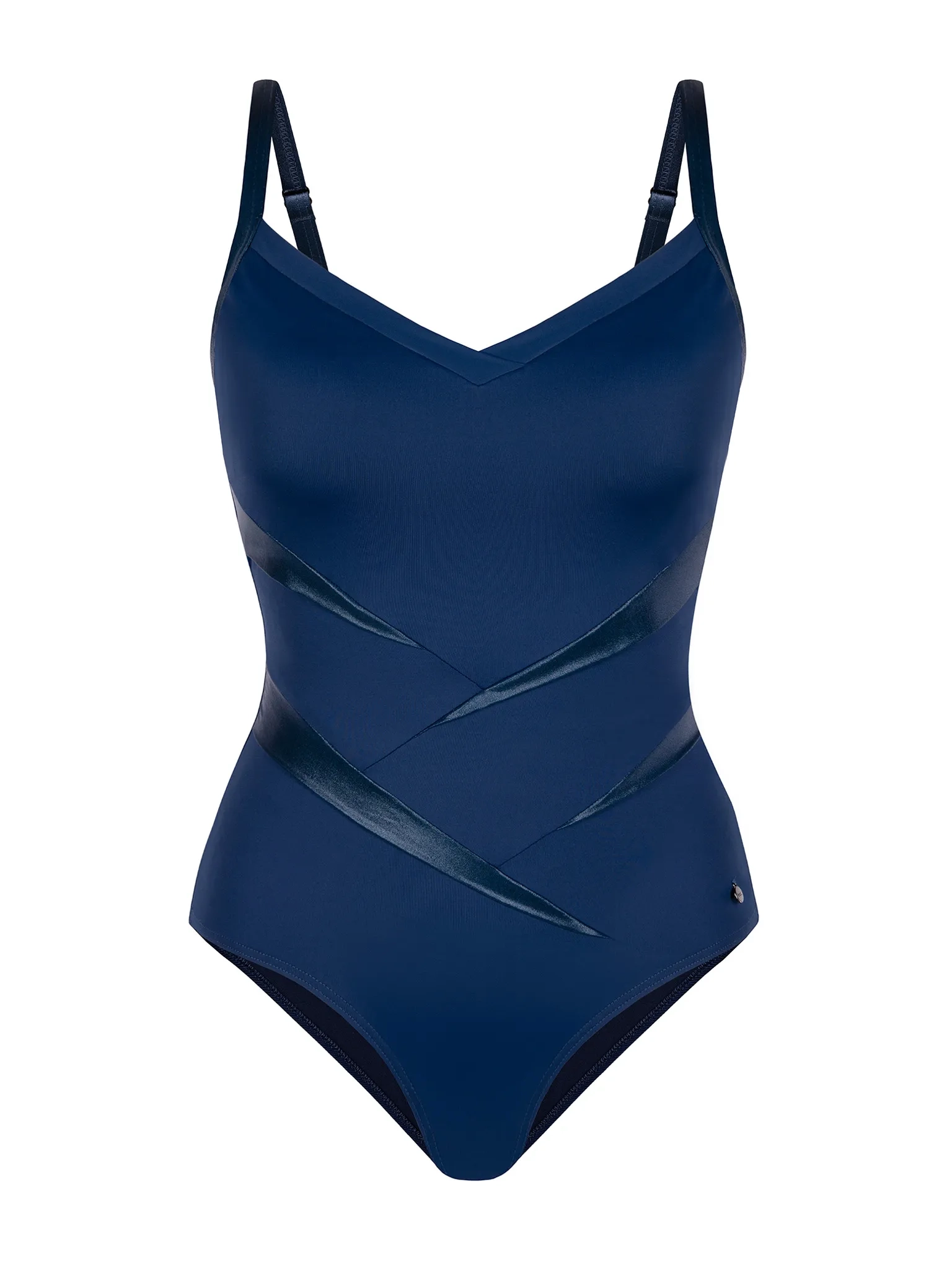 - Wygląd premium: jednolity granat z subtelnym połyskiem lamowań jest elegancki i podkreśla opaleniznę