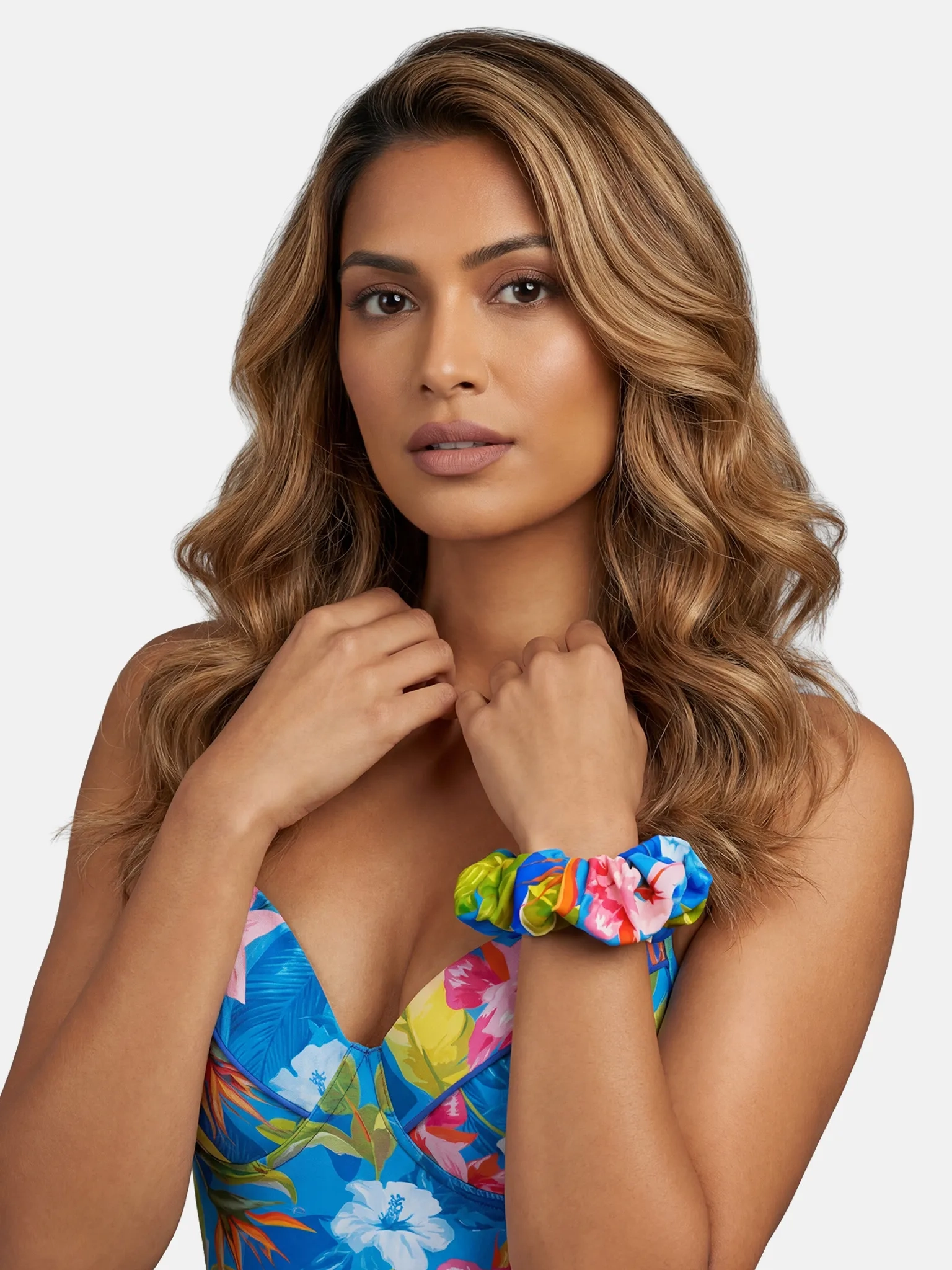 Dodaj wakacyjnego klimatu swojej fryzurze z gumką scrunchie w tropikalne kwiaty