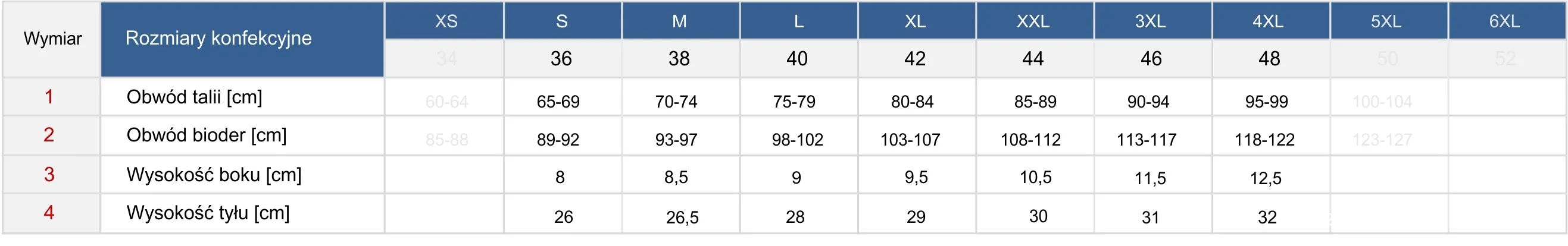 - Rozmiary: S/36 M/38 L/40 XL/42 XXL/44 3XL/46 4XL/48