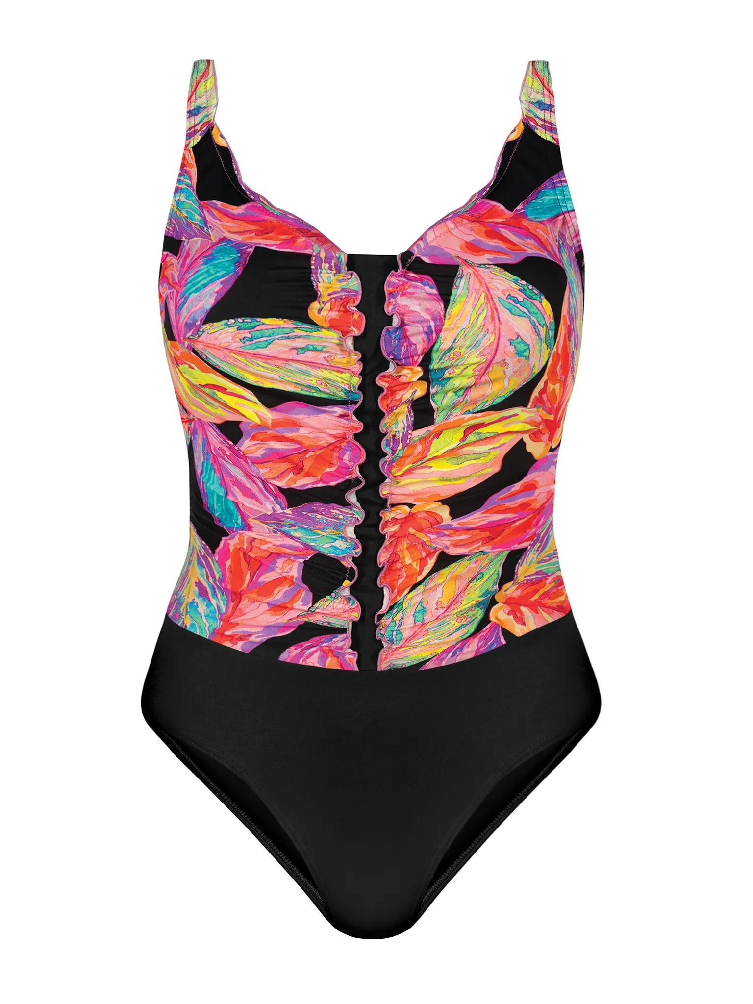 To nie tylko strój kąpielowy w kwiaty, ale również sposób na wyrażenie swojego stylu – tropikalny wzór i klasyczna czerń sprawiają, że model ten pasuje do każdej okazji, zarówno na plażę, jak i na basen.