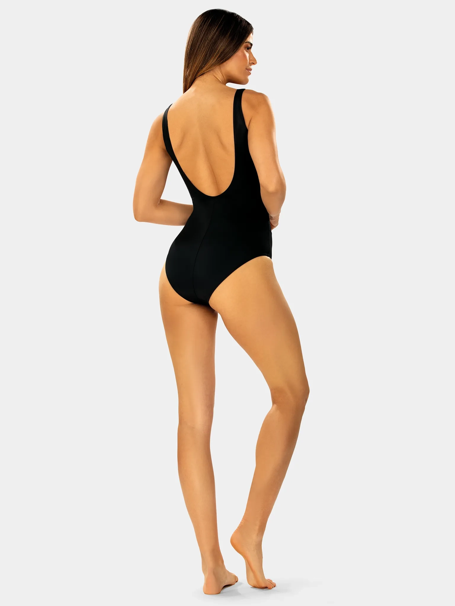 Planując wakacje, warto dobrać odzież i dodatki plażowe, które idealnie uzupełnią stylizację. Model F33/902 z linii Flower Power świetnie komponuje się z długą tuniką, stylowym kapeluszem i modnymi okularami przeciwsłonecznymi. Klasyczna czerń dolnej części kostiumu wysmukla sylwetkę, a tropikalne neonowe akcenty nadają świeżości i energii, tworząc idealny wakacyjny look. Jednoczęściowy strój kąpielowy to doskonały wybór nie tylko na wakacje ale również na basen, spa czy zimowe morsowanie.