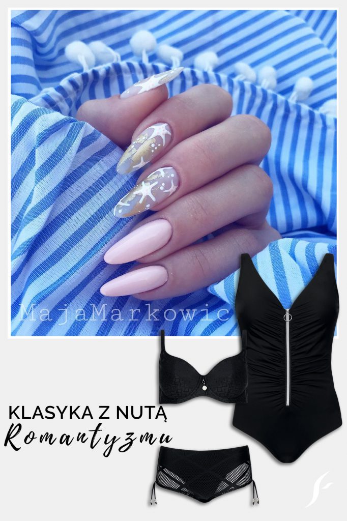 Są kobiety, dla których strój kąpielowy istniej tylko w jednym ulubionym kolorze i jest nim… czarny. Fanki optycznie wyszczuplającej i zawsze modnej klasyki mogą pomyśleć o pastelowych paznokciach z graficznymi wzorami. Ten sposób zdobienia podbił serca wielu kobiet, które właśnie o takie pazurki proszą u swojej ulubionej manicurzystki. Pamiętajcie, że prócz rozbielonych odcieni nowy sezon przyniósł nam również trend blanc space, czyli płytkę malowaną z pustą przestrzenią, na której pojawiają się egzotyczne motywy czy kawałki folii. Czy zdecydujesz się na taki manicure na lato?