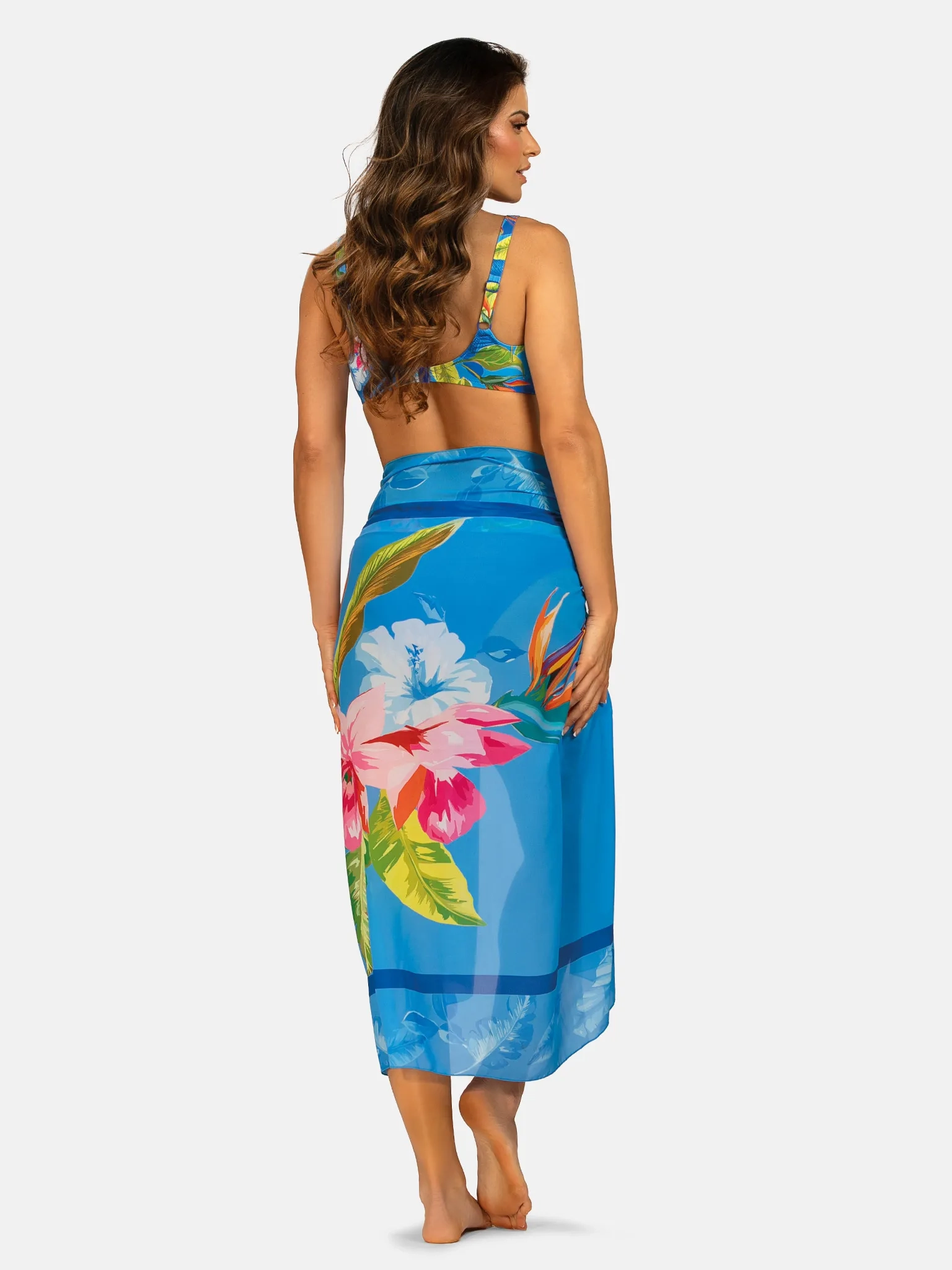 Wykonane z przewiewnej, szybkoschnącej tkaniny pareo doskonale sprawdza się w upalne dni. Można je wiązać na wiele sposobów - jako spódnicę, sukienkę, narzutkę na ramiona lub klasyczną chustę. Ozdobna klamra umożliwia tworzenie różnych stylizacji i dopasowanie do sylwetki, dzięki czemu model ten jest zarówno praktyczny, jak i efektowny. Kolorowe pareo w kwiaty pięknie komponuje się z niebieskimi kostiumami kąpielowymi oraz świetnie ożywia klasyczne czarne stroje kąpielowe.