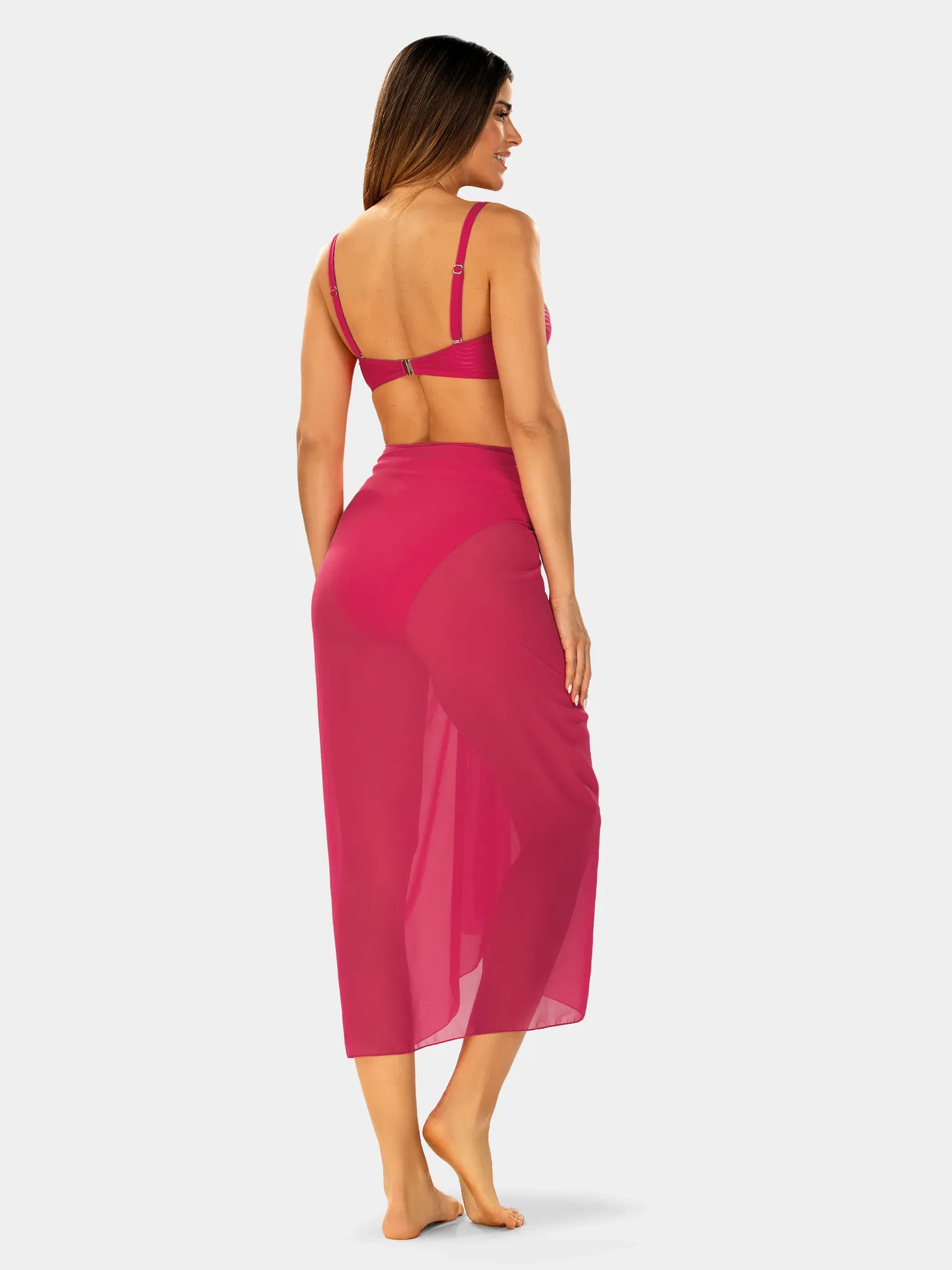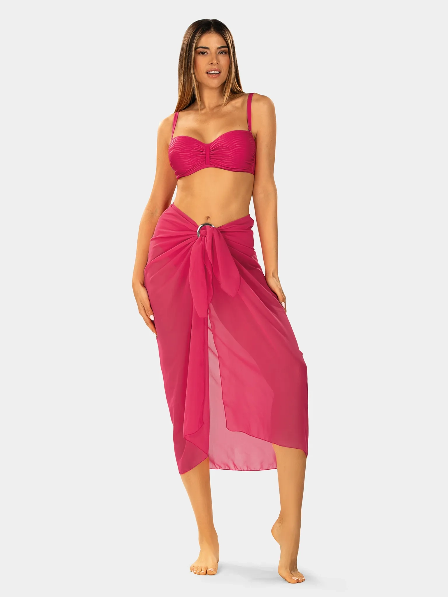 Wiązana chusta — pareo z szyfonu w kolorze fuksji
