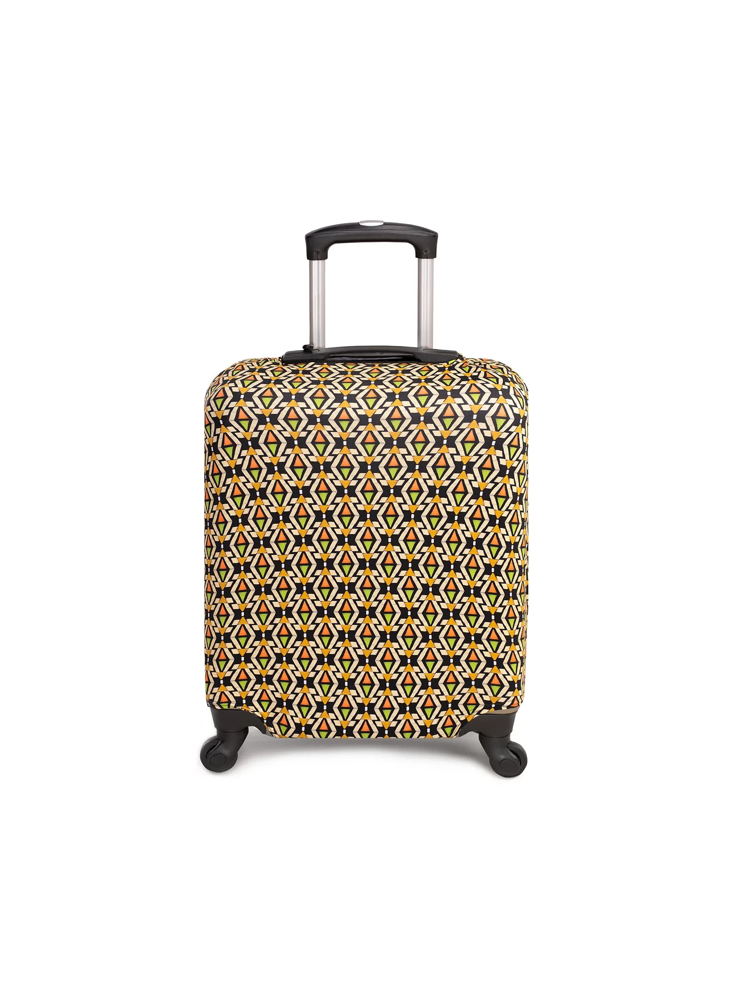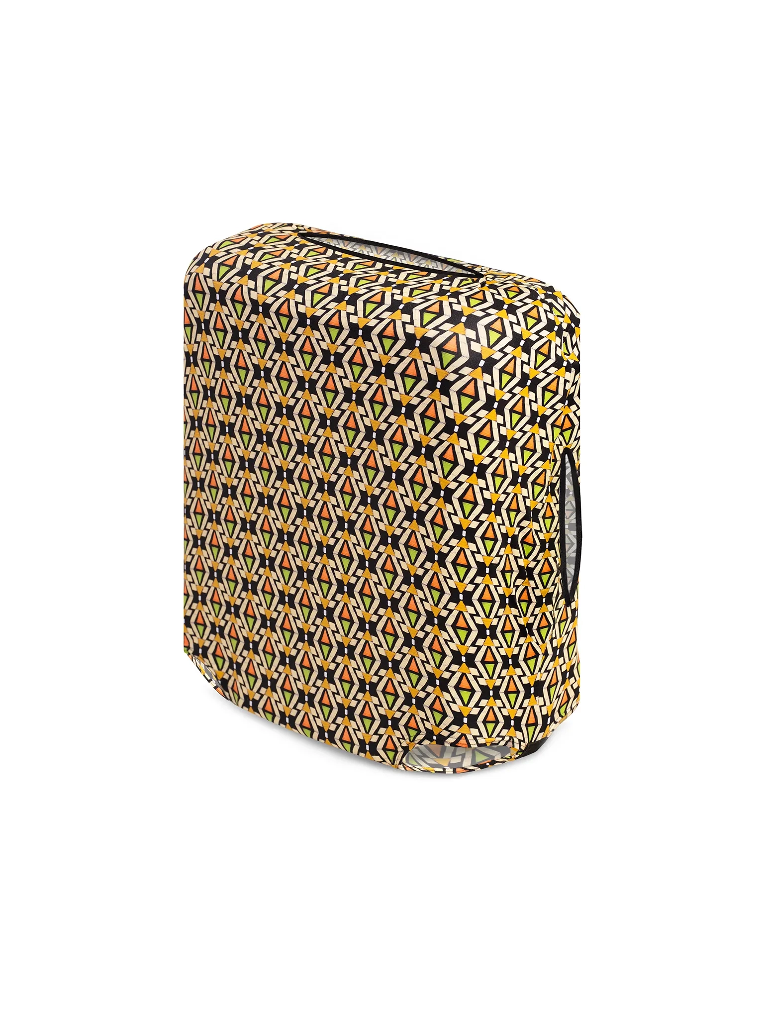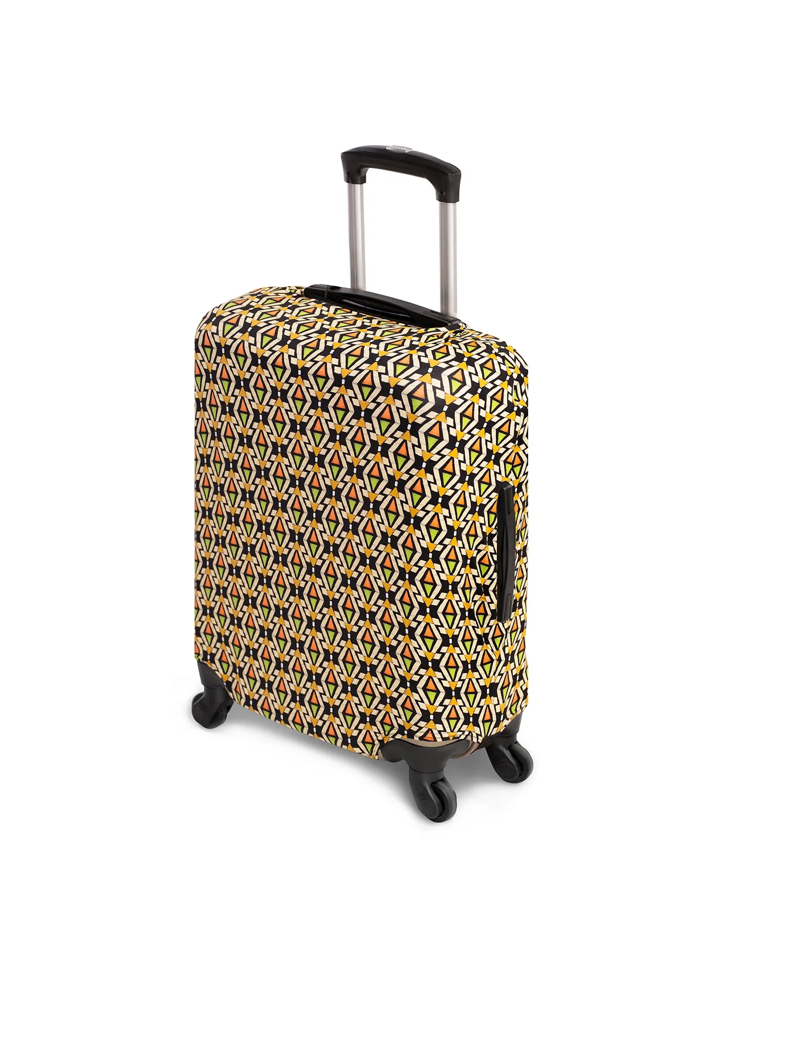 Podczas podróży Twoja walizka przechodzi naprawdę wiele: taśmy bagażowe, ciasne luki bagażowe, deszcz, kurz i przypadkowe otarcia. Pokrowiec na walizkę to praktyczny dodatek, który zabezpiecza bagaż przed zarysowaniami i zabrudzeniami, a przy okazji wyróżnia go na lotnisku. Geometryczny, mozaikowy wzór w odcieniach żółci, pomarańczu, czerni i bieli sprawia, że walizka jest dobrze widoczna z daleka i trudniej ją pomylić z innymi.