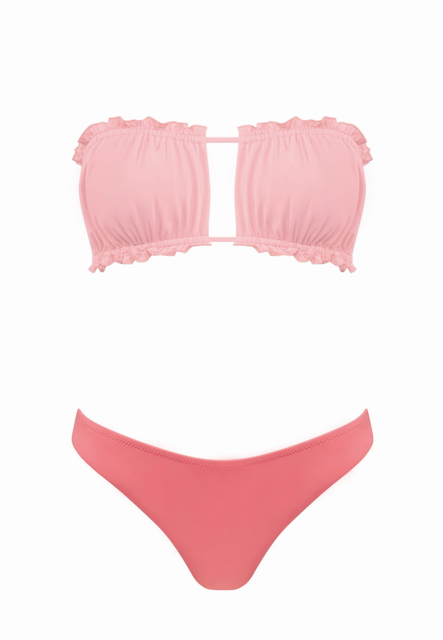 Wiązana góra bikini z marszczeniami róż FLG14/851