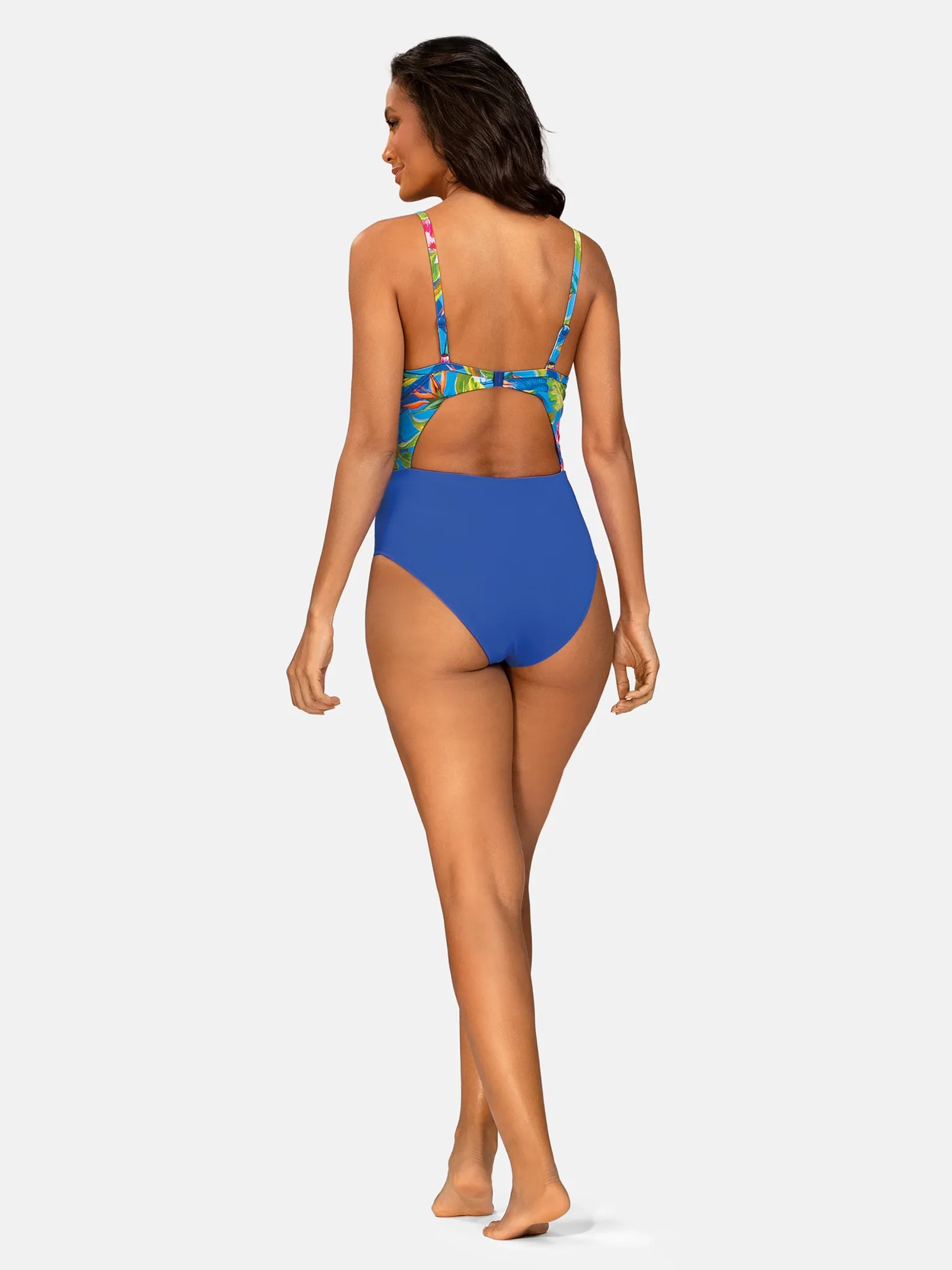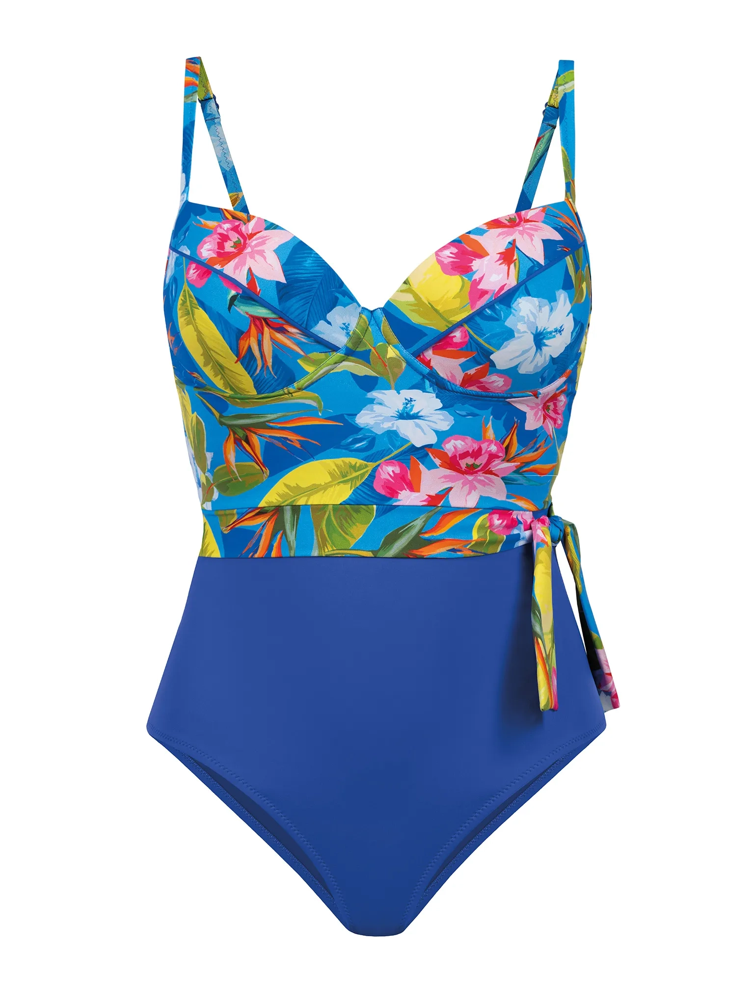 Modelujący jednoczęściowy kostium kąpielowy w tropikalne kwiaty - Twoja figura w najlepszym wydaniu