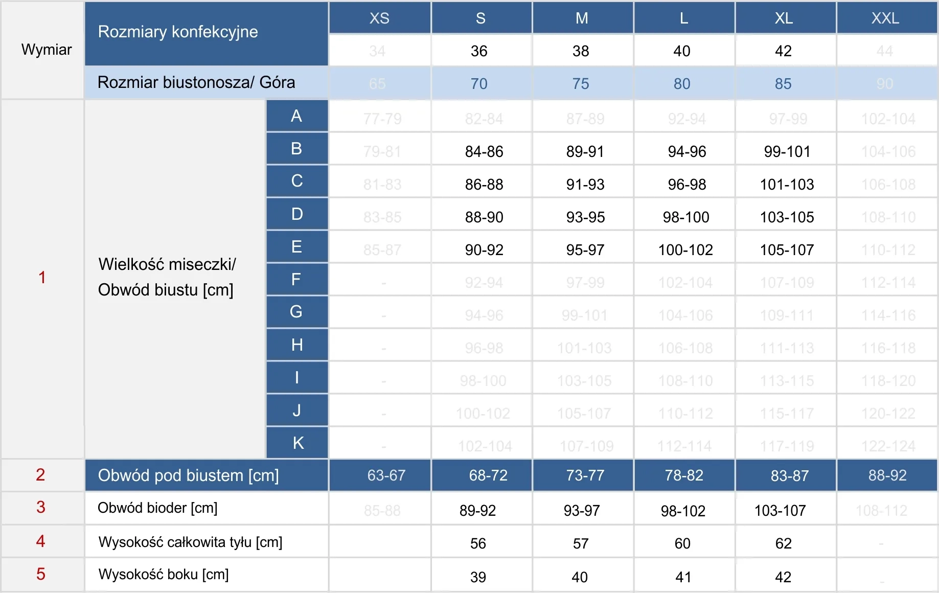- Komfort bez usztywnień - brak fiszbin i wkładek; podszewka z gumką stabilizuje biust.