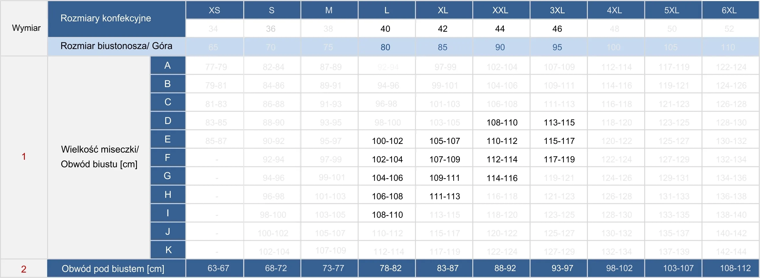 - Rozmiary: 40 EFGHI, 42 EFGH, 44 DEFG, 46 DEF