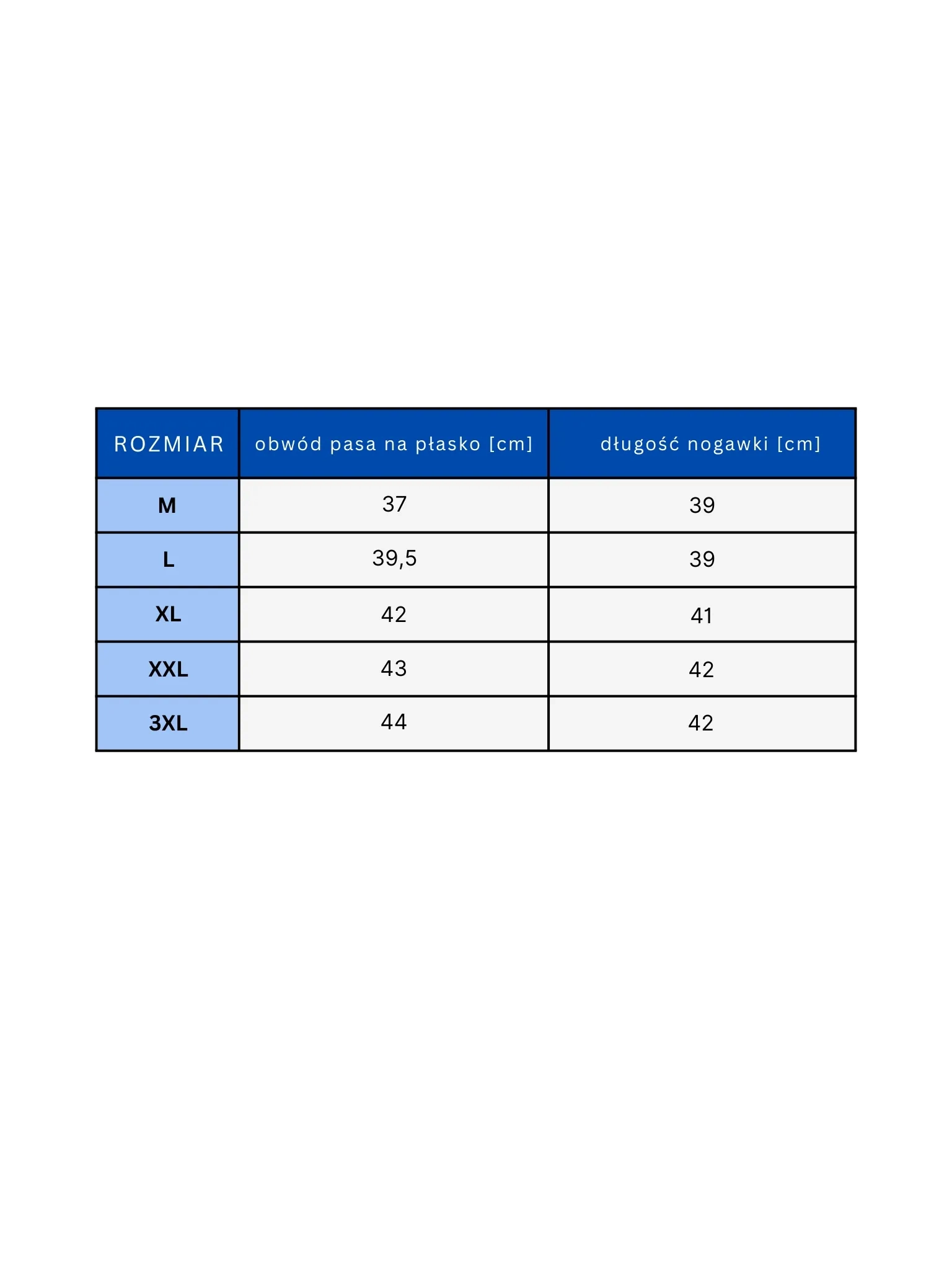 - Rozmiary: M (38), L (40), XL (42), XXL (44), 3XL (46)