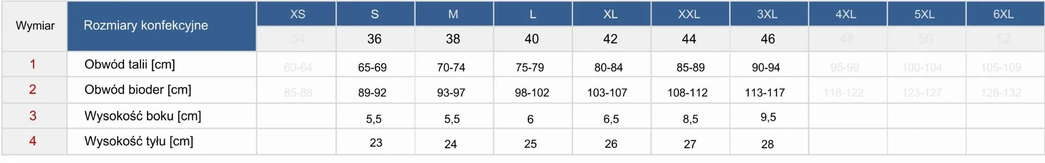 - Rozmiary: S/36, M/38, L/40, XL/42, XXL/44, 3XL/46