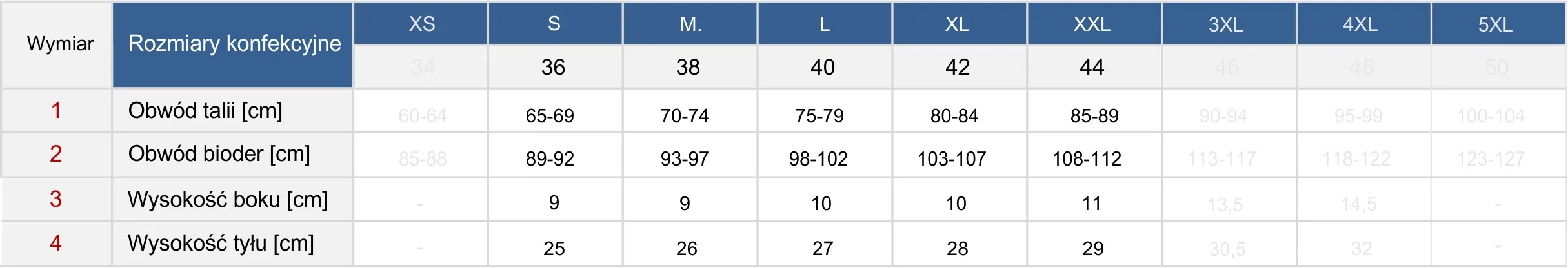 - Rozmiary: S/36, M/38, L/40, XL/42, XXL/44